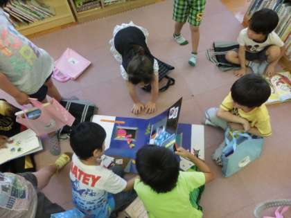 本を読んでもらいました。本物と同じ大きさの写真が