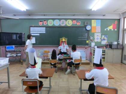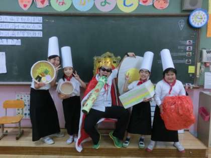 6時間目に、一緒に劇に出てもらった王様に教室に来てもらいました。