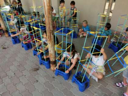 いうもの。さっそく支柱を渡すと,子どもたちは