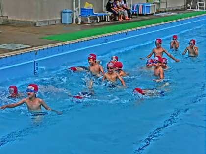 曇り空の下でしたが、4年生は待ちに待った水泳の授業でした。