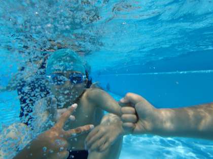 2年生の水遊び、最初は顔をつけるのが怖いという子もいましたが、