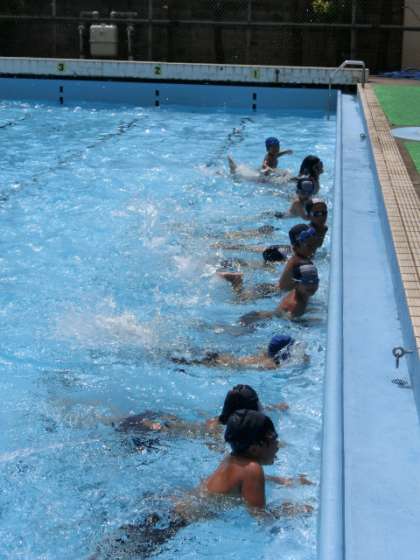 プールでの学習を,いつも楽しみにしている1年生。