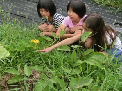 総合で植えたキュウリやナスも大きな実をつけていたり,カボチャの花の下に何やらふくらみも見つけました。これからどんな風に成長するのか,楽しみです!!
