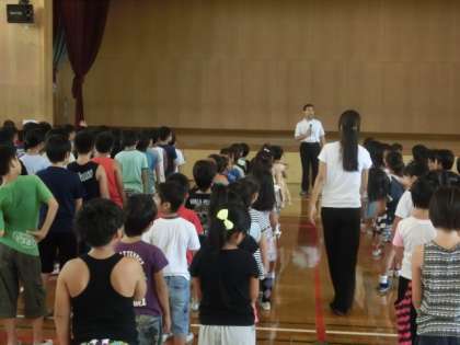 お話を聞けました。朝会の後には,9月に行われる