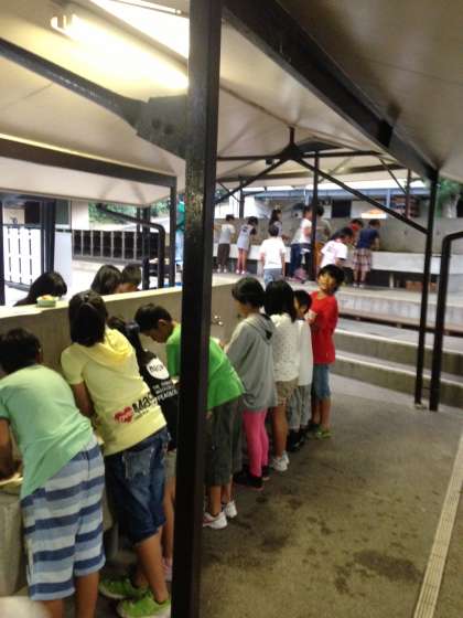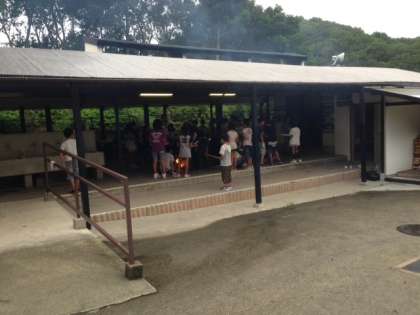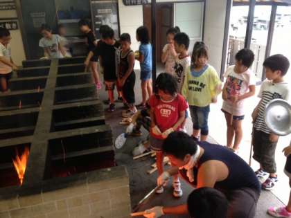 晩ご飯のカレーの準備にとりかかります。はじめてのかまどにみんな興奮を隠せません。美味しいカレーがつくれそうです
