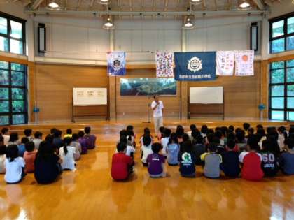 朝のつどいでは、みさきの家で一緒に過ごしている吉祥小学校のみなさんと学校紹介をしました。