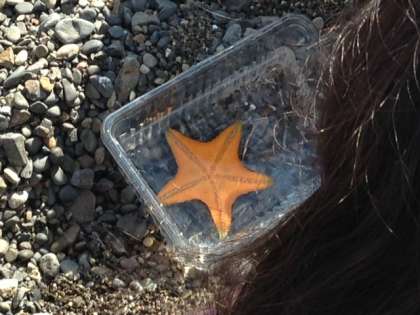 5本のすじから足が出てきました。さらに観察を続けると、くるんっと元に戻るヒトデ。たくさんの不思議と発見のあった磯観察でした。