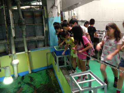 大きな魚に餌やりをする貴重な体験に、驚きと喜びの声があがりました。