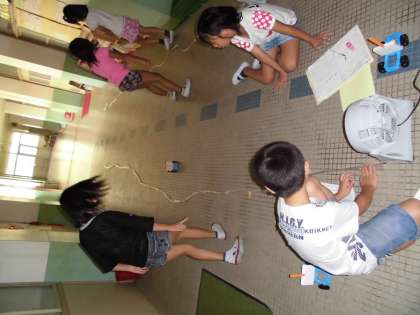 今日は「風の強さによって,車のうごきはかわるのだろうか。」ということを確かめる学習をしました。