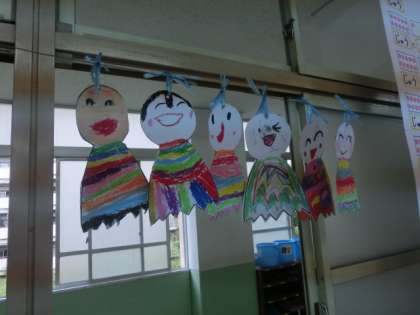 子どもたちの帰った後,てるてるぼうずを見ていると,