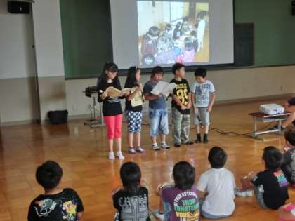 また,学校行事の発表だけでは1年生は退屈するから,グループで出し物をするということになり,グループごとに出し物もしました。