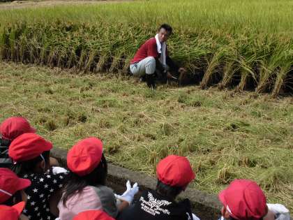 10月10日(木)2年生は,6月に自分たちで植えた稲を刈りに行きました。