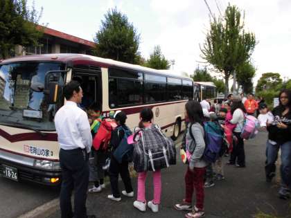 バスに乗りこんで,今から山の家に向かって出発します。