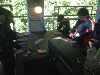 同じ太さの棒を,小刀を使って一方だけ細くしていきます。