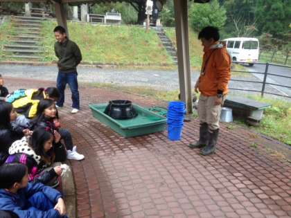 イワナを手で掴み調理していただきます。