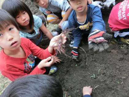 最初は小さいイモしか見つかりませんでしたが、しっかり掘ると、いくつかのいい大きさのさつまいもを掘り出すことができました。