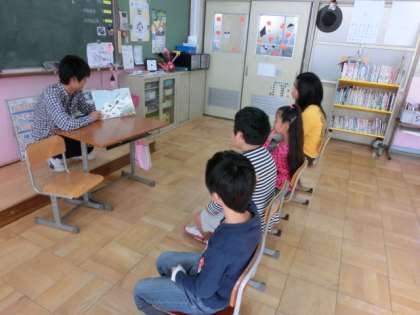 今週は読書週間です。この日は他のクラスの先生が出張読み聞かせをしに来てくれました。子どもたちはとても楽しそうに本を見ていました。