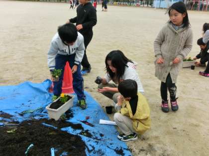 グッと寒さが増し,厚着になった子ども達ですが外に出て土をプランターに入れ,花を選ぶ子ども達の顔には笑顔があふれていました。これから毎日,日替わりで水やりをしてきれいな花を咲かせてほしいと思います。