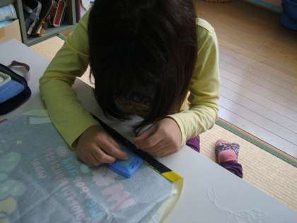 6年生は家庭科でエプロン制作をしています。初めて使うミシンにどきどきしながら作っています。完成まであとすこしです。