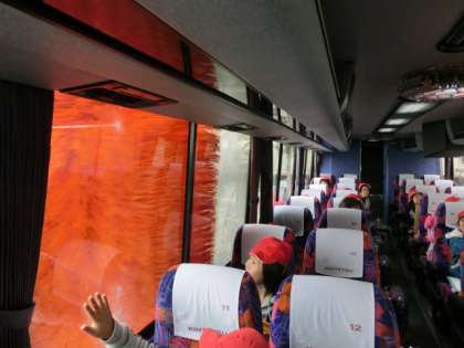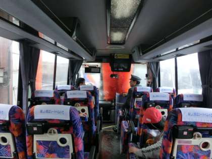 バスに乗らせていただいて、中から洗車の様子を見せてもらうことができました。