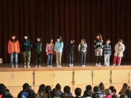 今日の朝会で、以前描いた計量の絵の表彰式がありました。4組からも選ばれて、そのうちの一人が特選に選ばれました。教室に帰ってからみんなで喜びました。