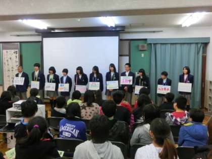各教科での学習が終わると,中学2,3年生の生徒会の先輩方が中学校の紹介やクイズをしてくれました。自分の知っている子が活躍している姿を見て,子どもたちも食い入るような顔で話を聞いていました。とてもすてきな中学生の姿を見ることができました。