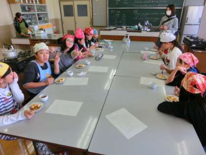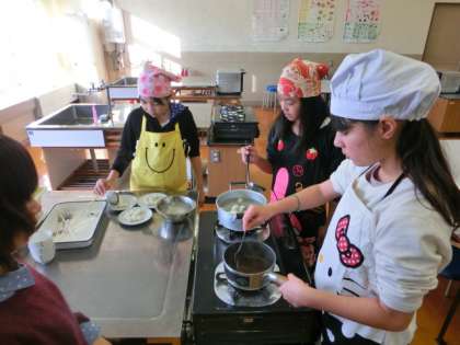家庭科では調理実習をしました。だんご粉を使い,みたらし団子を作りました。団子をきれいにまるめ,もちもちになるようにゆで,甘いたれを作り,とってもおいしいみたらし団子を作ることができました。「家でも作りたい!」という子どもの声が聞こえてきました。