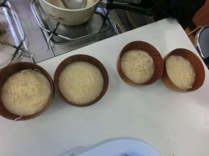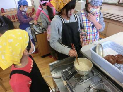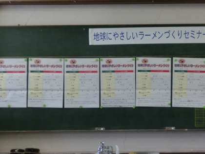 今日は地球にやさしいラーメン作りをしました。どの点に注意しながら調理すると、環境に良いラーメンを作ることができるのか、班で話し合って考えながら作りました。最後に正解を確認をして、子どもたちは今後の日常生活に活かそうとしていました。