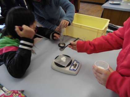 水や食塩,ホウ酸の量を正確にはかって実験を進めました。