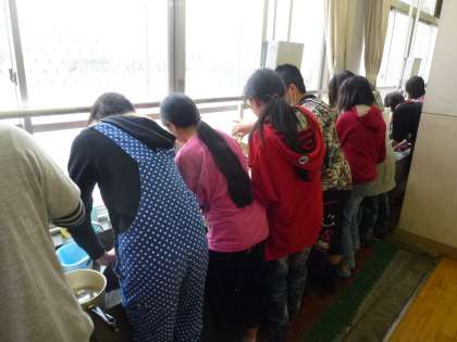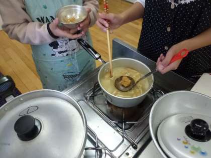 今日は調理実習をしました。ご飯とみそ汁をつくりました。ご飯は鍋で炊き,みそ汁も煮干しでだしからとりました。普段ご飯は炊飯器で炊くことが多いため,慣れない手順に悪戦苦闘していました。それでもみんなで協力してどの班も無事おいしいご飯とみそ汁をつくることができました。後片付けもきちんとできました。