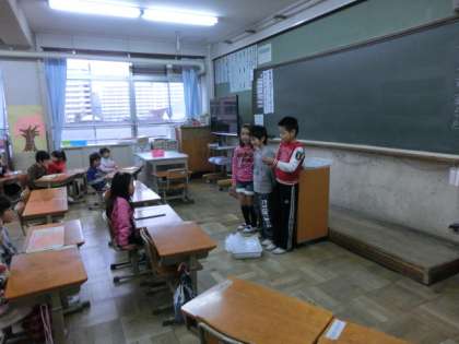 朝から、1年生の教室にチェックカードを渡しに行きました。