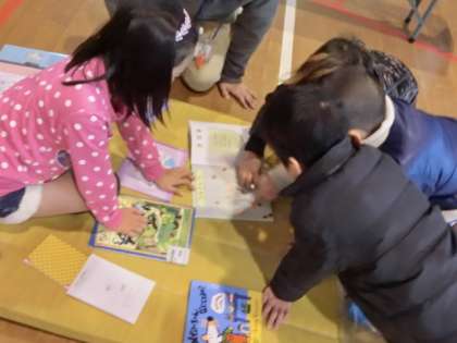 読み聞かせコーナーでは、自分で作った絵本や、おすすめの絵本を並べました。選んでもらった本を上手に読み聞かせすることができました。