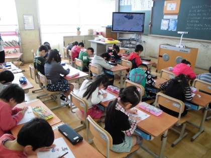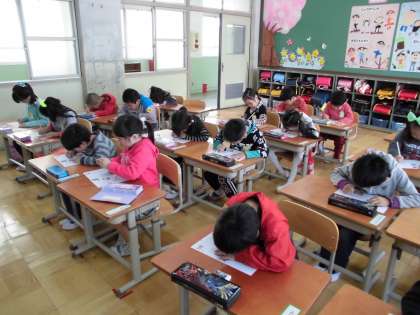 そのあと,えんぴつを使って線をかく練習をしました。子どもたちは,とても集中して学習に向かっていました。