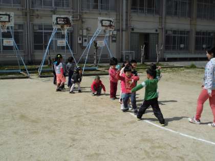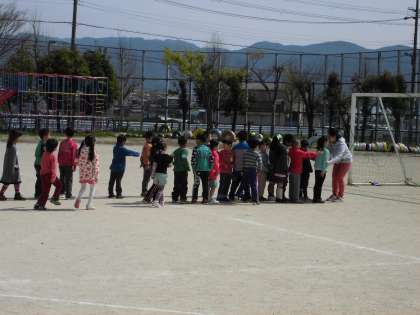 今日は,とってもお天気がよかったので運動場でゲームをしました。