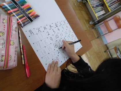 いよいよ今日から本格的な学習が始まりました。朝は日記を書き、国語の時間は読み聞かせをしてから、それぞれの学習しました。算数では、カレンダー作りをして1か月の見通しを持ちました。体育では、鉄棒をしたり、50M走をしたりしました。子どもたちはどの教科もとても意欲的に頑張っていました。このように4組は、のびのびと学習していきたいと思っています。