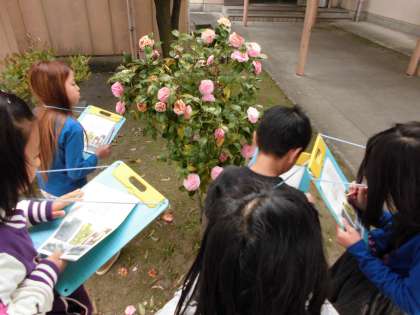 まずは,理科の学習の仕方やきまりの確認です。そして身近にある,春の花を探しに行きました!