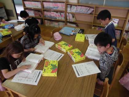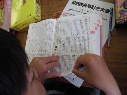 国語辞典に五十音順で並んでいる語句の中から,調べる言葉で載っている場所の見当をつけて探していきます。国語辞典は使えば使うほど上手になります。手元にあるととても便利なものです。学習に入る際,国語辞典をご準備いただきましてありがとうございました。子どもたちはみな,自分の国語辞典を嬉しそうに持ち歩いています。調べたいという意欲を大切にして言葉の数を増やしていけるようにしたいと思います。