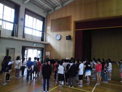 6年生の目標は,1年生にしっかりと気持ちを伝えることです。言葉や歌,聴く姿勢でお手本を示してほしいと思います。今日の練習ではまだ少し声量が足りませんでした。相手に言葉が届かなければ,気持ちも届きません。6年生の力,まだまだ出せます。あと数日の練習で仕上げたいと思います。