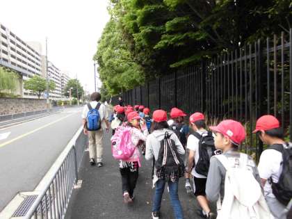 雨の心配をしていましたが,子どもたちの願いが空の神様に伝わったのか,ときおり晴れ間がのぞく曇り空の出発になりました。子どもたちはウキウキわくわくしながら笑顔で宇治植物公園に向かいました。