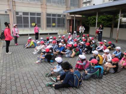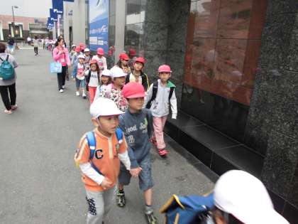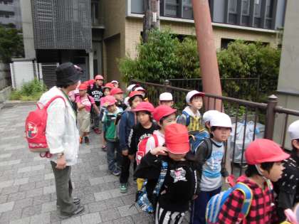 電車のマナー,歩く時の約束など,2年生にたくさん教えてもらいながら,一生懸命歩いていた1年生でした。