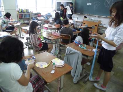 そんな中,今日はおむかえ集会で1年生にプレゼントするペンダント作りをしました。2年生から6年生が書いた1年生へのメッセージをペンダントの形に貼り合わせました。とても手際よく分担・協力して作業を進めることができました。1年生,喜んでくれるといいな!