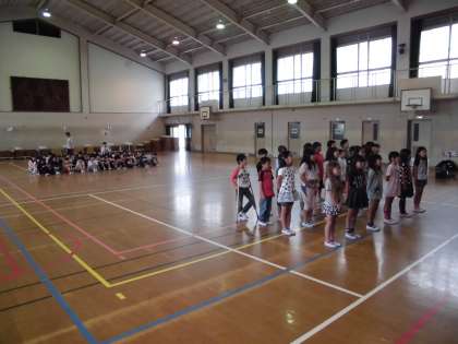 いよいよ明日に迫ったお迎え集会。今日は最後の練習をしました。子どもたちの中にも緊張感があり,とってもいい練習になりました。なぜ緊張感があったのかというと,今日は6年生のお兄さんお姉さんと一緒に練習をしたからです。