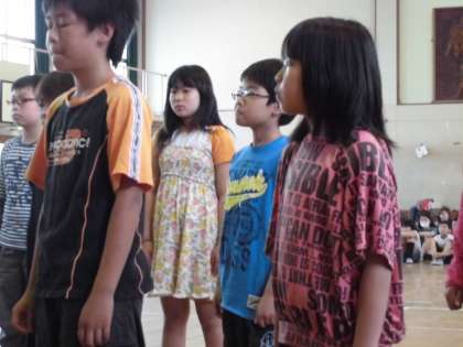 4組の子どもたちは,自分たちの演奏の他に,それぞれの学年に入って歌もうたいました。大勢でひとつの音楽を作り上げることの大切さを感じながら,一年生に向けて歌いました。