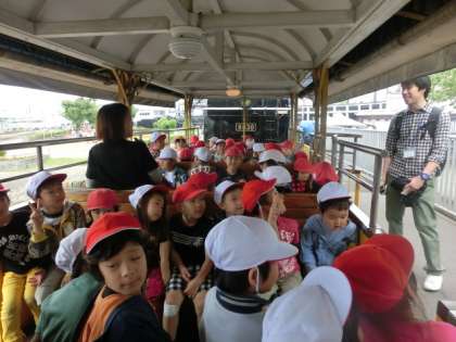 子どもたちからは歓声が!はじめてSLに乗る子が多く,