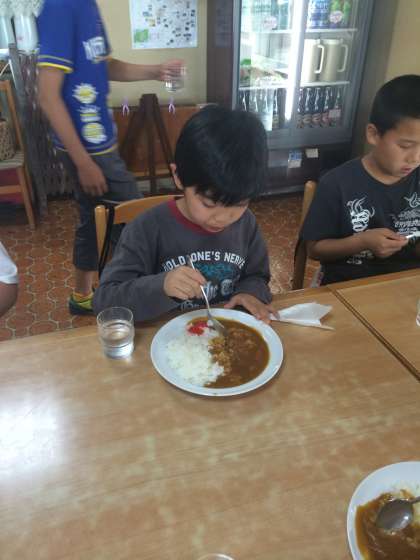 お昼ご飯は、坂扇屋さんのカレーを食べました。とても美味しくて、おかわりしました。