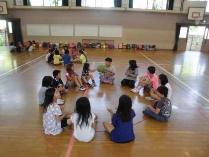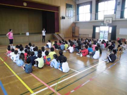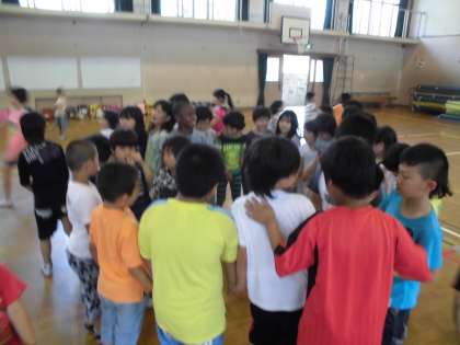 体育館に集まって,みんなで歌に合わせてゲームをしたり,リズム遊びをしました!