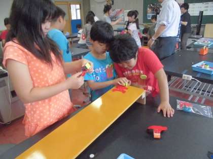 プラネタリウムを観てから,4年,5年,6年は実験室学習をしました。ビー玉を使ってコロコロ人形を作りました。しっかりと科学センターの先生の説明をきいて作ることができました。