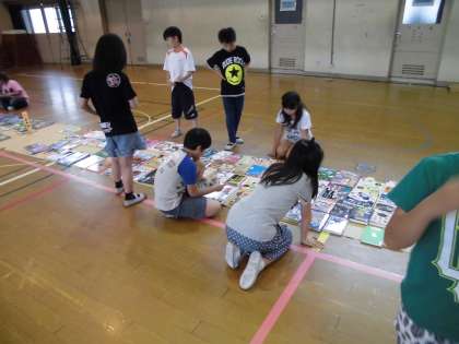昨日,選書会がありました。本が体育館にずらーっと並んでいる様子を見て,「わー!!!」という歓声が響いていました。子どもたちは目を輝かせながら,じっくりゆっくりと本を選んでいました。選んだ本が,図書室に並ぶのがとても楽しみです。