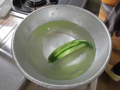 以前,収穫したきゅうりを調理しました。さっと茹でて塩もみをしました。出来上がったきゅうりを食べてみると,程よい塩加減で,カリカリと良い音をたてていました。みんなでおいしく頂きました。
