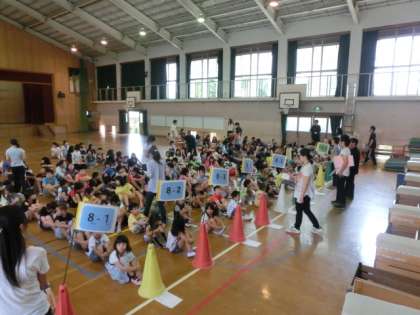 6月21日(土)の休日参観で,災害時の引き渡し訓練があります。訓練でも街区棟ごとに並びます。今日の朝会では,担当の先生の話をよく聞いて,すぐに並ぶことができました。